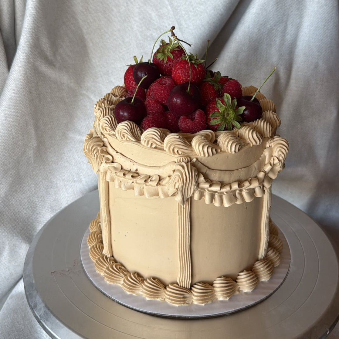 We love decorating in a style that is whimsical and organic. We typically use fresh florals, delicious fruits and funky piping techniques to make each cake special and unique.
