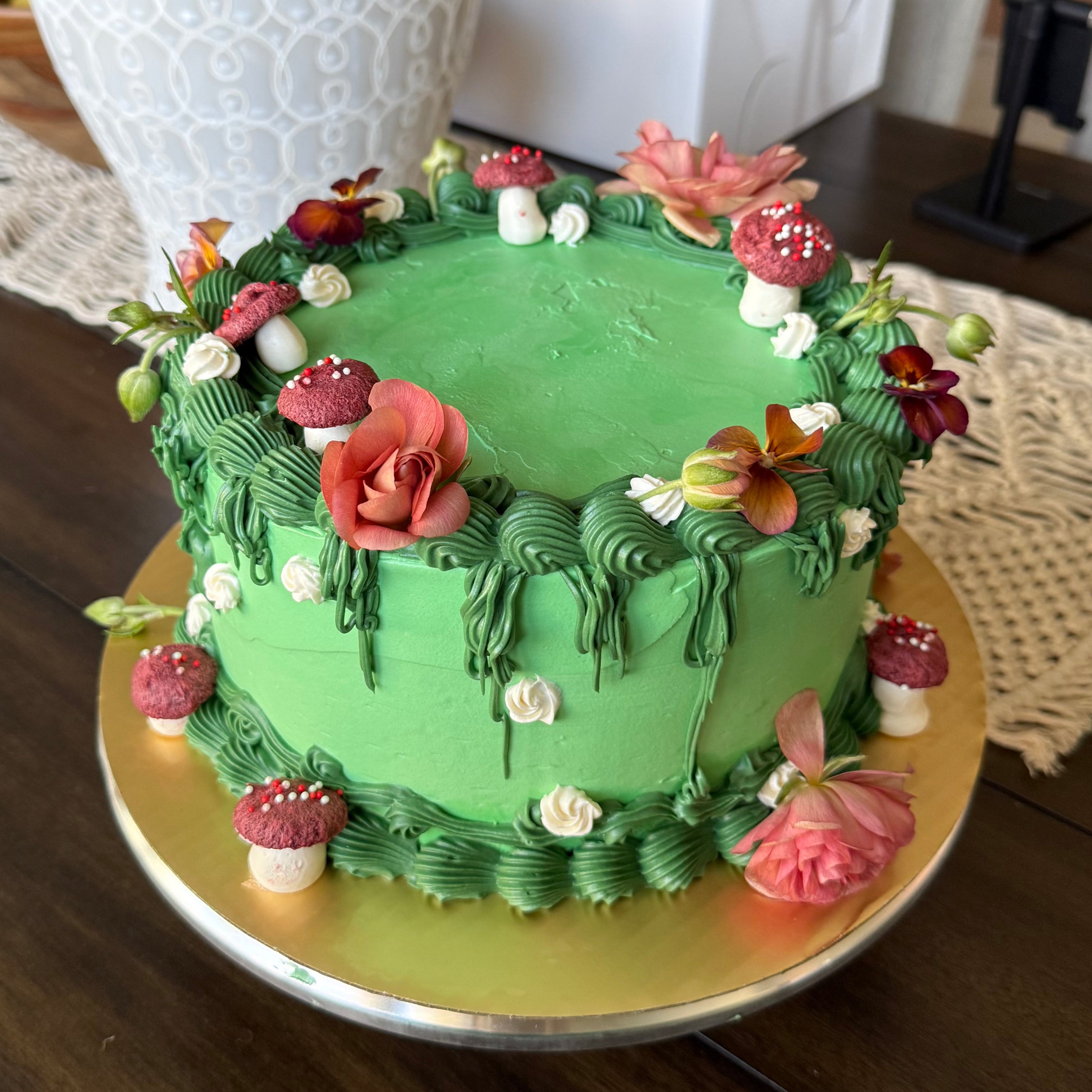 We love decorating in a style that is whimsical and organic. We typically use fresh florals, delicious fruits and funky piping techniques to make each cake special and unique.